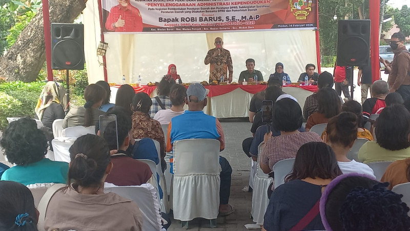 Hal itu disampaikan, Ketua Fraksi PDI Perjuangan DPRD Kota Medan, Robi Barus SE pada Sosialisasi ke II TA 2026 Produk Hukum Daerah Kota Medan Perda Nomor 3 tahun 2021 tentang Penyelenggaraan Administrasi Kependudukan Kota Medan di Jalan Gaperta Ujung (area Givency One), Kelurahan Tanjung Gusta, Medan Helvetia, Sabtu (14/2/2026).